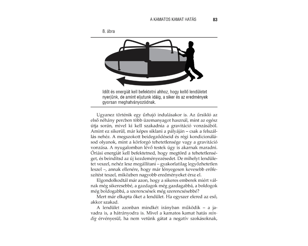 Darren Hardy, aki több mint 25 éve a sikeres médiaipar központi felügyelője, mindent hallott, mindent látott és a legtöbbet ki is próbálta. Ez a könyv feltárja a siker alapelveit. A kamatos kamat hatás tartalmazza mindazt, amit minden kiemelkedő teljesítményt elérő embernek tudnia, gyakorolnia és elsajátítania kell a rendkívüli siker eléréséhez. A könyvben stratégiákat találsz a következőkre vonatkozóan: