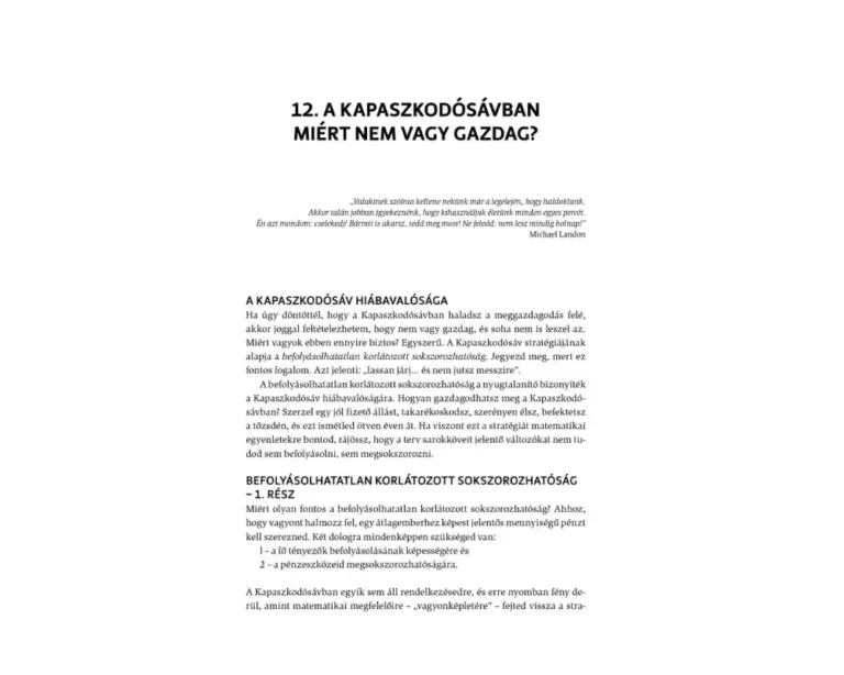 Agyadat átmosták azok a pénzügyi „szakértők”, akik a „lassan járj, tovább érsz” elvét próbálják eladni neked. A meggazdagodásnak létezik egy matematikai törvényszerűségeken alapuló gyorsabb, rövidebb útja, amely lehetővé teszi, hogy most élj jól, ahelyett hogy gazdagon halnál meg. Ne csak várj és reménykedj, inkább válts a Gyorsitósávra, és valósítsd meg az álmaidat!