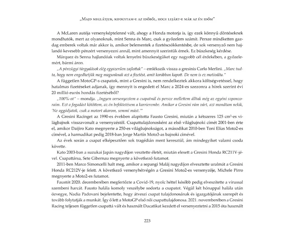 • Fordította Kerek István, az Arena4 MotoGP kommentátora,